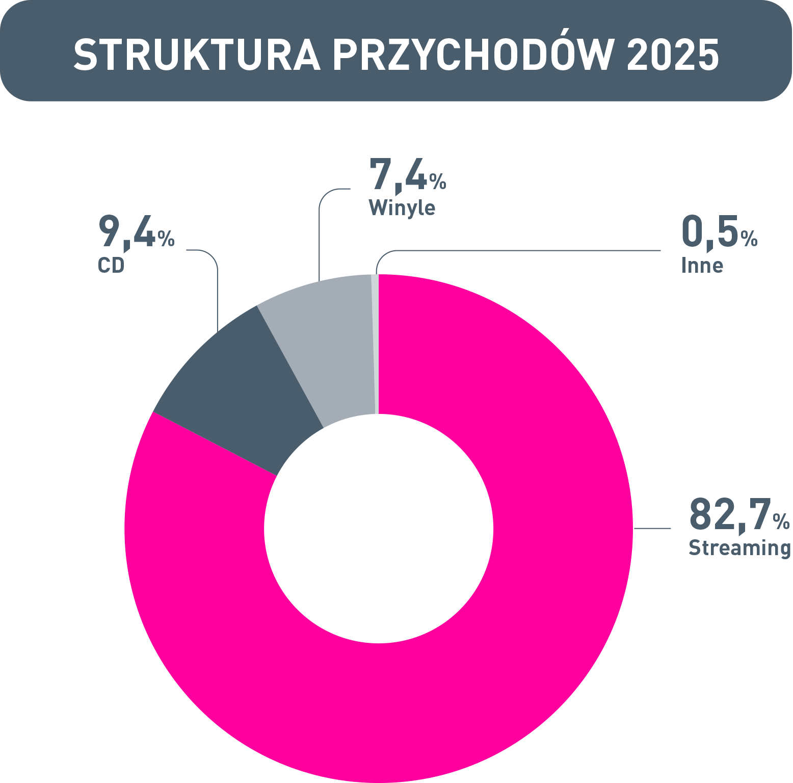 Dwucyfrowy wzrost przychodów cyfrowych był w 2025 roku niższy niż rok wcześniej, co wskazuje na stopniowe dojrzewanie rynku i rosnące jego nasycenie – zjawisko charakterystyczne dla najbardziej rozwiniętych rynków muzycznych świata.