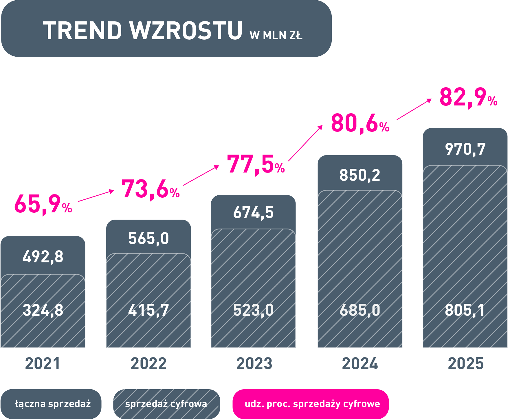 Przychody ze sprzedaży cyfrowej osiągnęły w 2025 roku poziom 805,1 mln zł, co stanowi już 83% całego rynku i oznacza wzrost o 17,5% rok do roku.