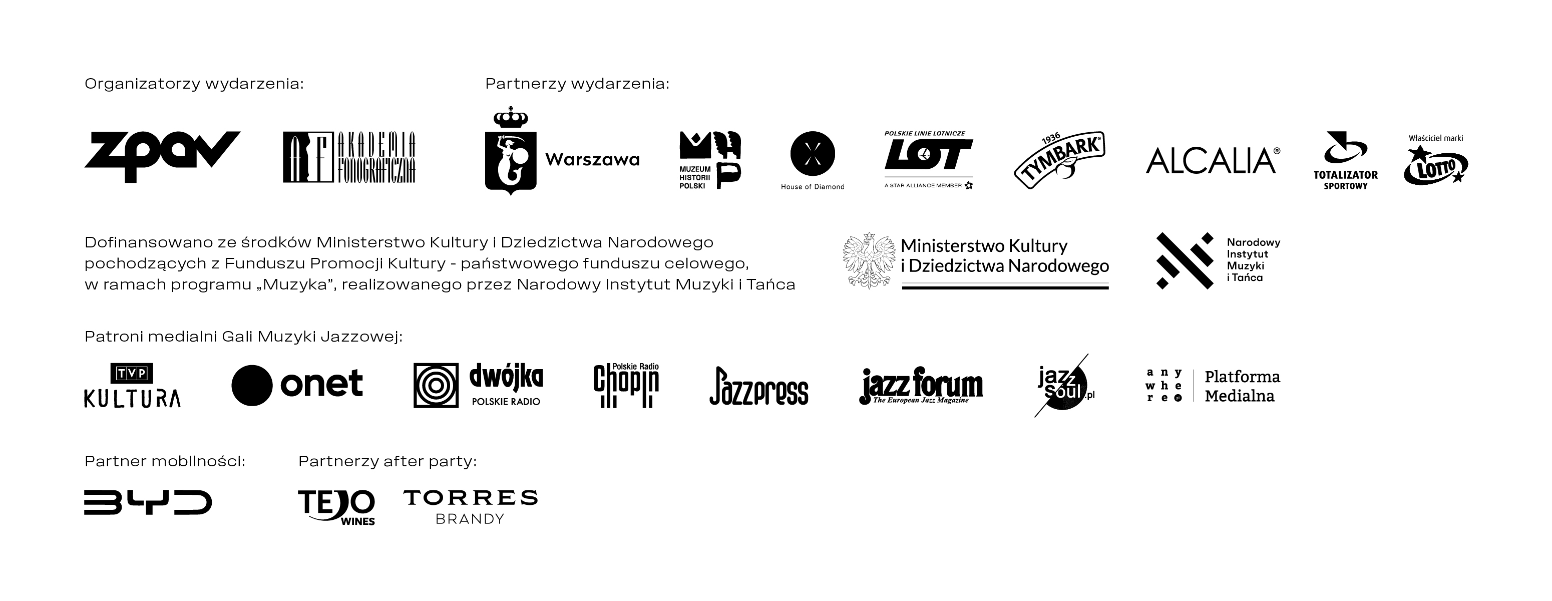 Patroni medialni: Gali Muzyki Jazzowej: TVP Kultura, Onet, Polskie Radio Program Drugi, Polskie Radio Chopin, JazzPress, JazzForum, JazzSoul.pl, Anywhere.pl.