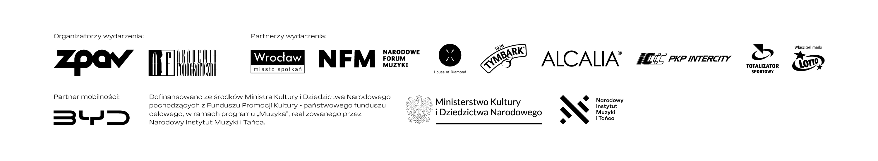 Partnerzy wydarzenia: Miasto Wrocław, NFM, House of Diamond, Tymbark, Alcalia, PKP Intercity, Totalizator Sportowy właściciel marki LOTTO
