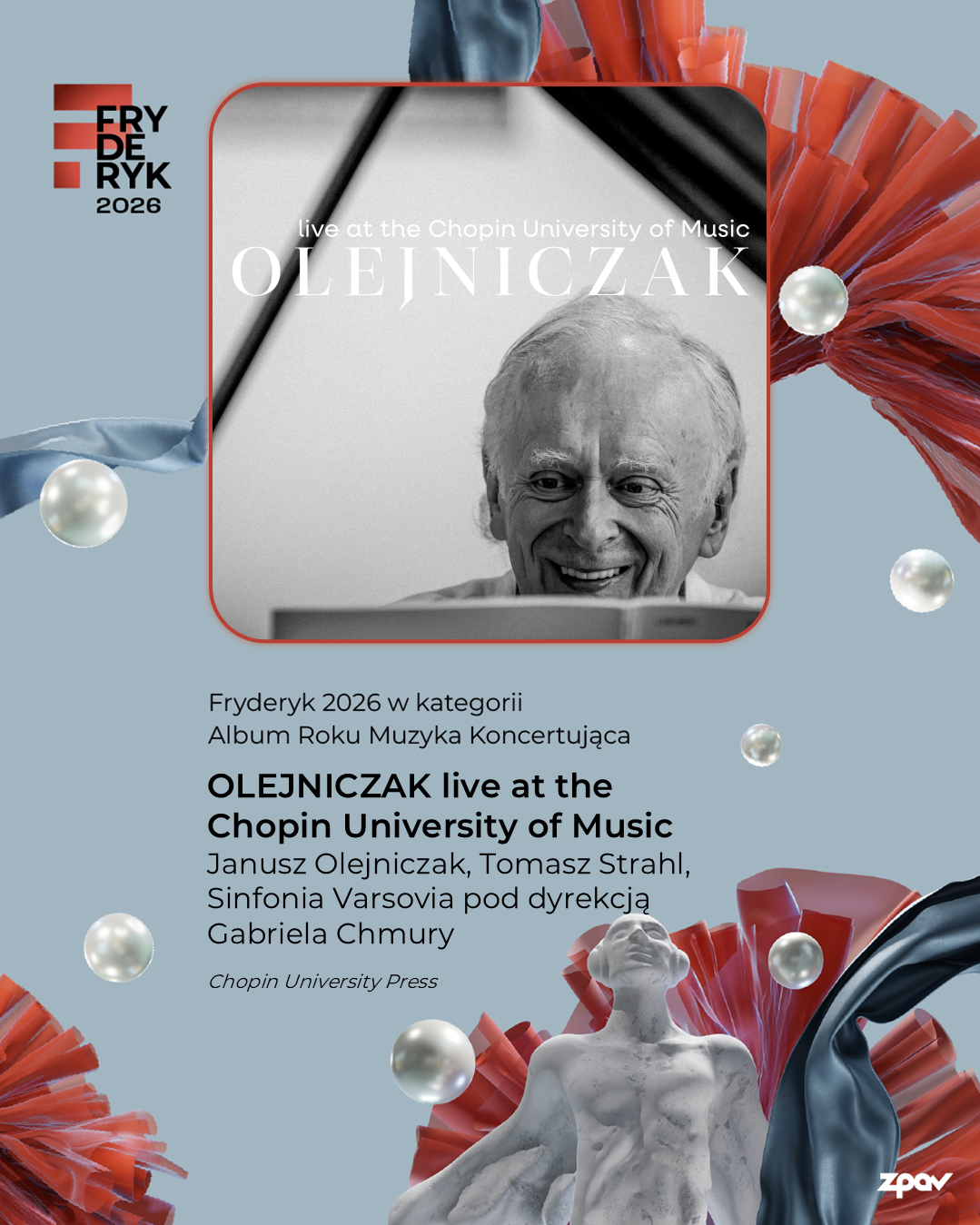 Wśród laureatów znalazł się również Janusz Olejniczak – laureat Złotego Fryderyka (2021), wyróżniony za album OLEJNICZAK live at the Chopin University of Music. Nagranie to pozostaje ważnym świadectwem jego interpretacji repertuaru od Chopina po Kilara.